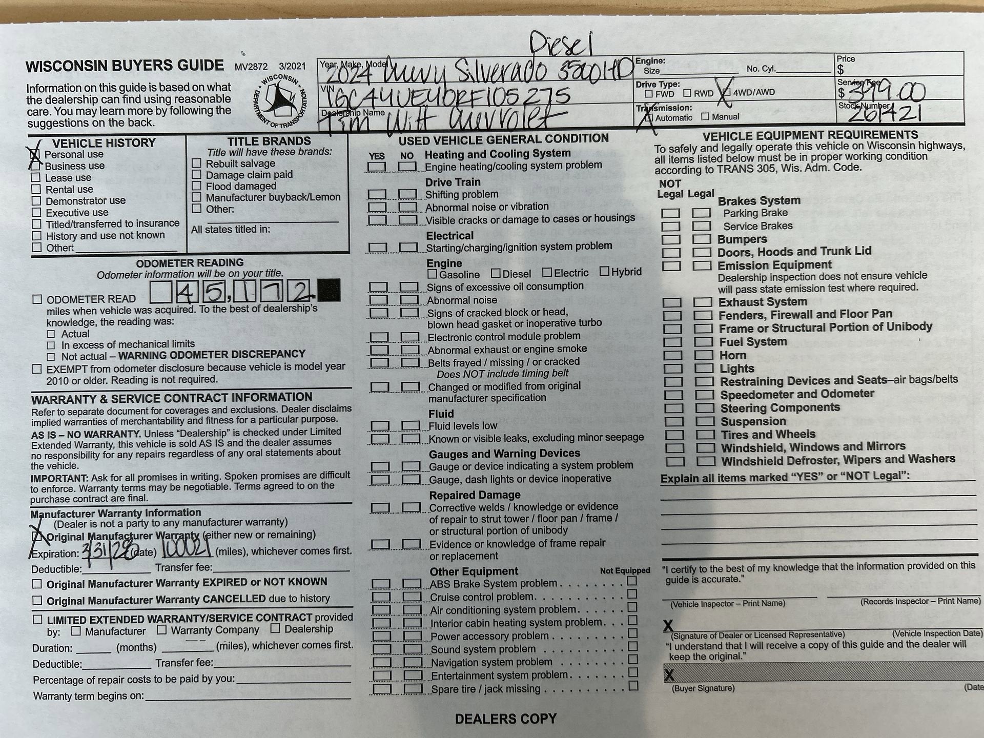 Mileage 45,172