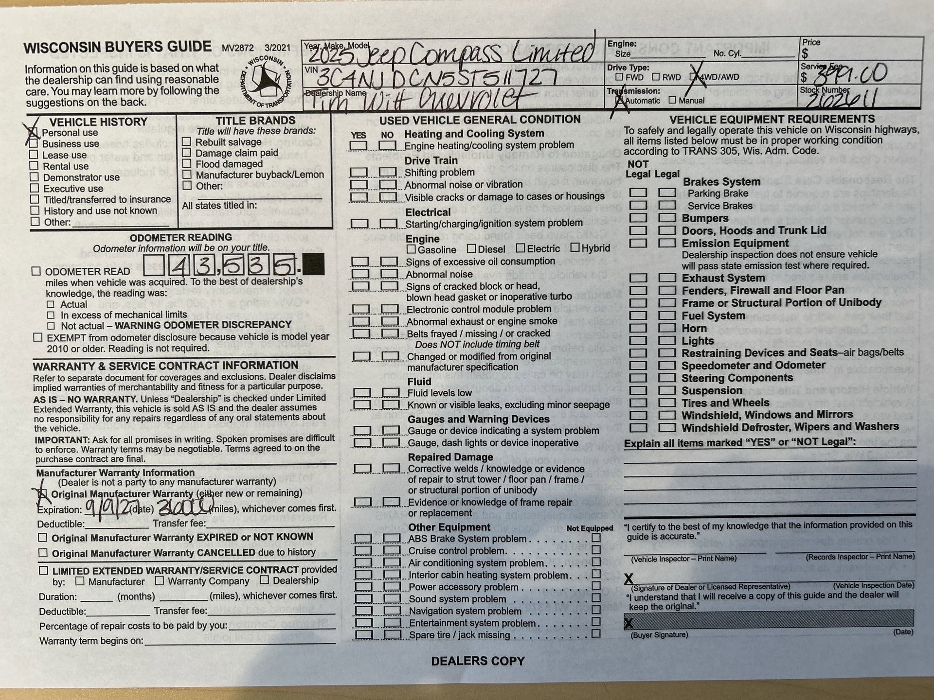 Mileage 43,535